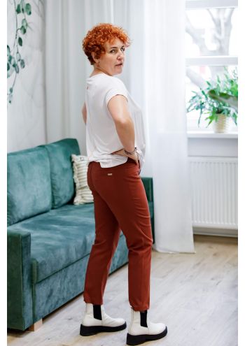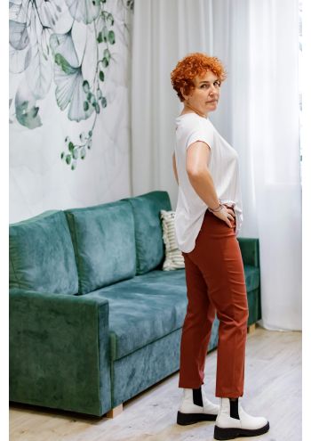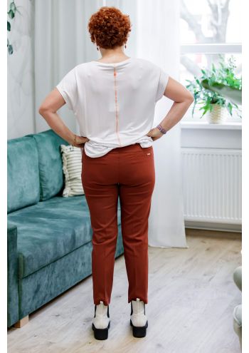 Biały bawełniany t-shirt dla Pań, które nawet, gdy zakładają białą koszulkę, chcą mieć pewność, że będzie ona niebanalna i niezwyczajna w swojej zwyczajności. Bardzo uniwersalny element garderoby, pasujący niemal do wszystkiego, przede wszystkim do stylizacji casualowych, codziennych, wszędzie tam, gdzie priorytetem jest swoboda i komfort. Wśród innych białych t-shirtów wyróżnia go jakość wykonania, nieco wydłużony z tyłu krój oraz malownicze pomarańczowe przeszycie (również z tyłu).