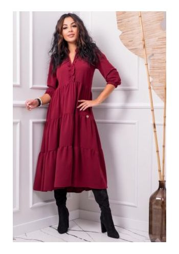 Lekka i delikatna sukienka z falban, z ozdobnym marszczeniem przy dekolcie i szerokim rękawkiem 3/4 zakończonym wąskim mankietem. Bardzo uniwersalna - doskonała propozycja na mniej formalne okazje, a nawet jako sukienka po domu, jednocześnie na tyle elegancka, że z powodzeniem można stworzyć na jej bazie stylizację wieczorową lub na służbowe spotkanie.